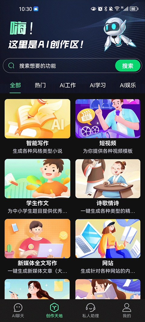 4、此外,用户还可以点击私人助理来解决你不同的问题。