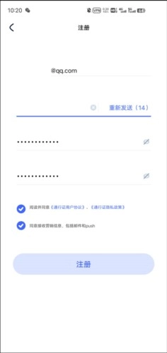 2、输入邮箱、密码、然后获取验证码,点击注册。