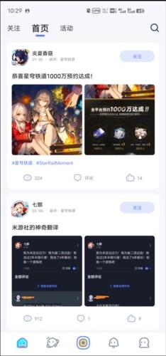 4、进入软件如图,玩家可在这里看到很多米哈游旗下的资讯信息。