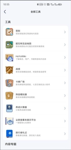 5、同时软件内还有很多实用的工具,如签到、提瓦特互动地图、养成计算器等。