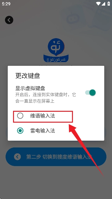 4、接着把键盘切换为【搜度维语输入法】,之后打开其他应用,当处于需要输入文字的场景时,调出输入法,这样就能借助这款搜度维语输入法App来进行维语输入了。