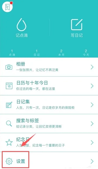 1、进入青橙日记后,点选下方的“设置”选项,进入设置页面。