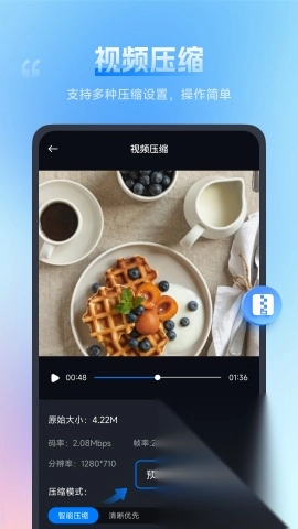 2. 视频文件压缩:自定义压缩比、分辨率差、帧率、音视频比特率等。