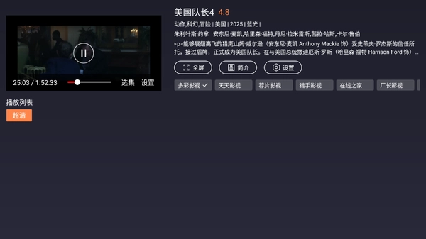 3、高清播放体验,影视内容在播放过程中均支持高清画质呈现,为用户带来全新的观影服务。