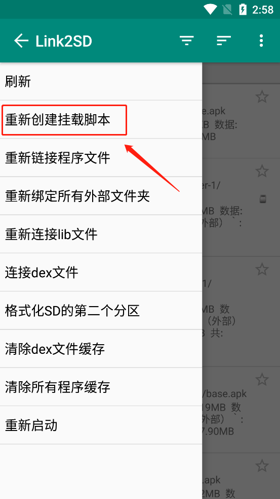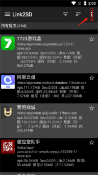 1、打开link2sd之后点击页面右上角的三个点。