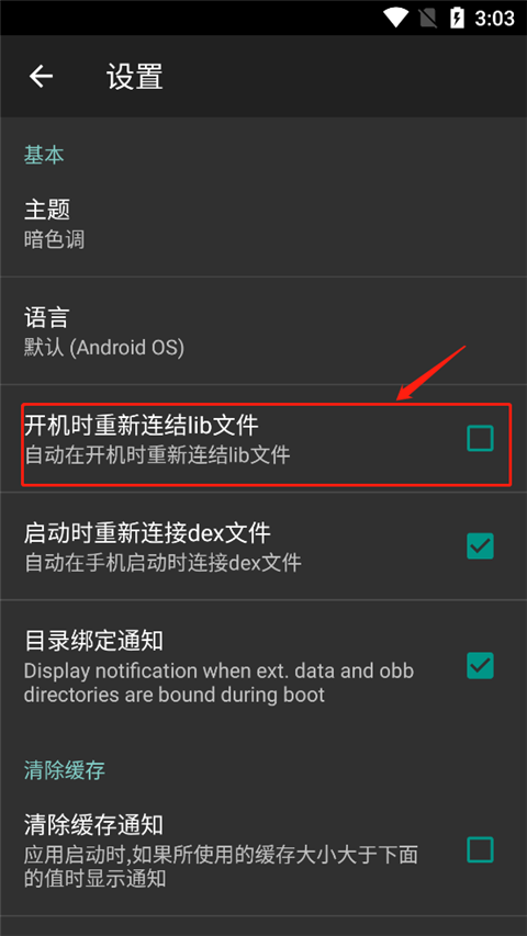 3、在“设置”页面选择“开机时重新连结lib文件”后面的框框勾上就可以了。