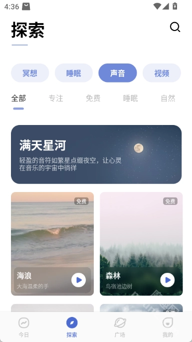 3、拥有丰富的轻音乐、自然音乐和白噪音。