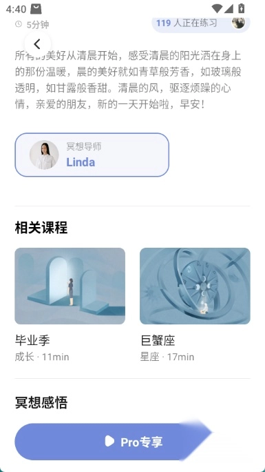 4.冥想页提供多种放松课程,可根据时长选择。