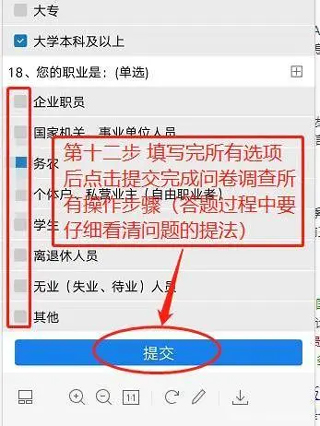 4、接下来选择你所在的县区名称,并填写个人的一些基本信息,之后提交就能参与调查活动了。