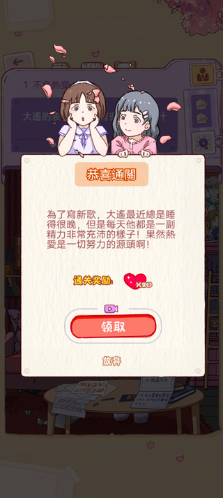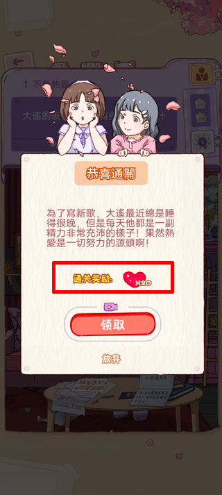 3、每个章节解锁章节后可领取奖励,奖励里面就包含心动值。