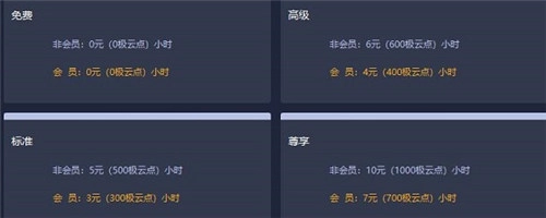 目前极云普惠云电脑收费标准分为会员和非会员