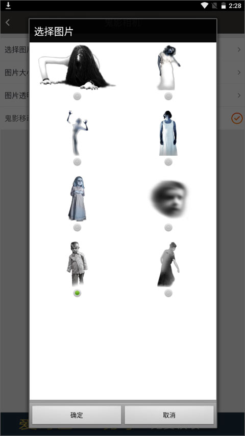当你打开相机功能后,相机画面里会出现一个鬼影,你也能随机挑选自己心仪的鬼影图片,之后再进行拍摄。