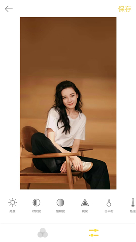 3、进入编辑界面后,我们能够对亮度、对比度、饱和度、锐化程度以及白平衡等参数进行编辑与调整。