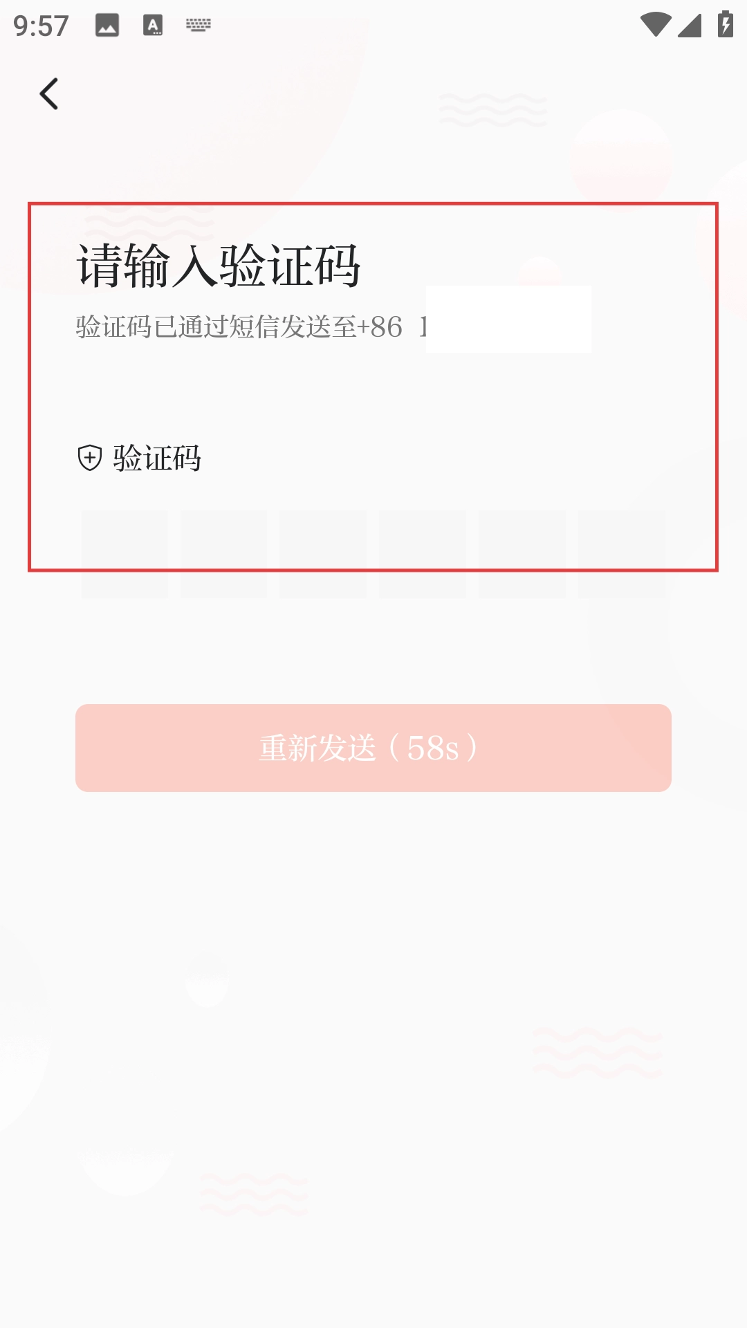 4、在验证码输入界面,将收到的短信验证码输入到【验证码】输入框中,即可完成登录流程。