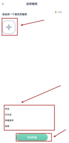 4、在加号按钮中挑选自己喜爱的植物,把下方所有内容都编辑完成后,点击开始种植就可以了。