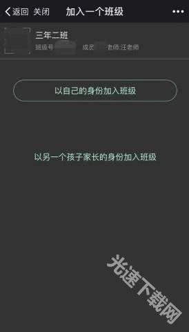 6. 可选择“以自己的身份加入班级”,也可以选择“以另一个孩子家长的身份加入班级”