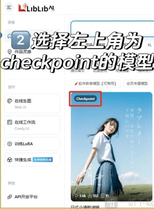 2. 选择照片左上角的Checkpoint模型。