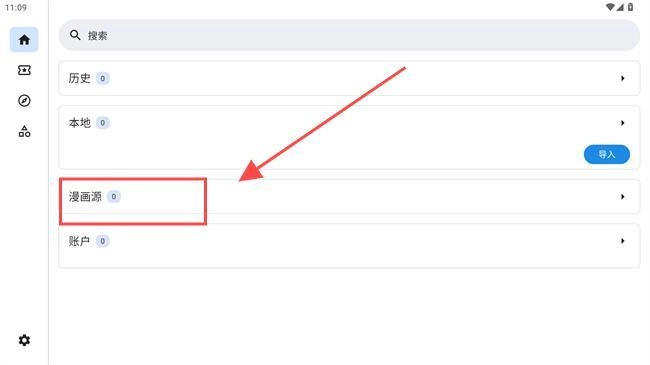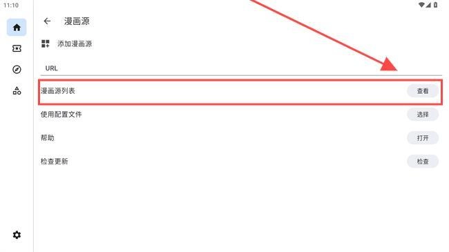 4、如箭头位置所示,用户需要选择漫画列表来进行查看,自己来添加漫画源