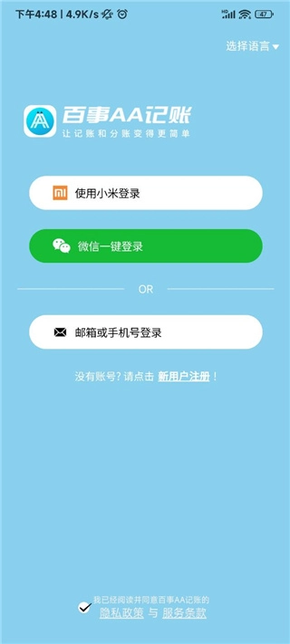 2、进入登录页面后,可选择微信一键登录或账号登录;若没有账号,点击下方的“新用户注册”即可。