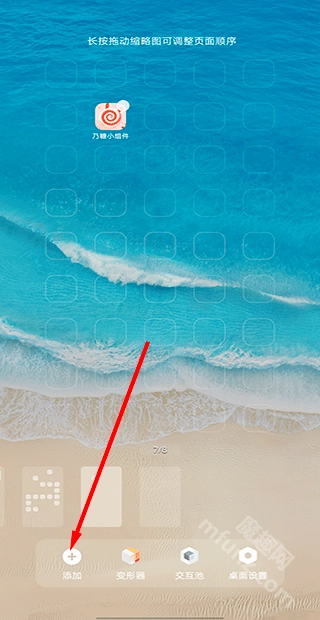 1、在“桌面”页面,长按桌面空白处或双指在桌面捏合,选择“添加”