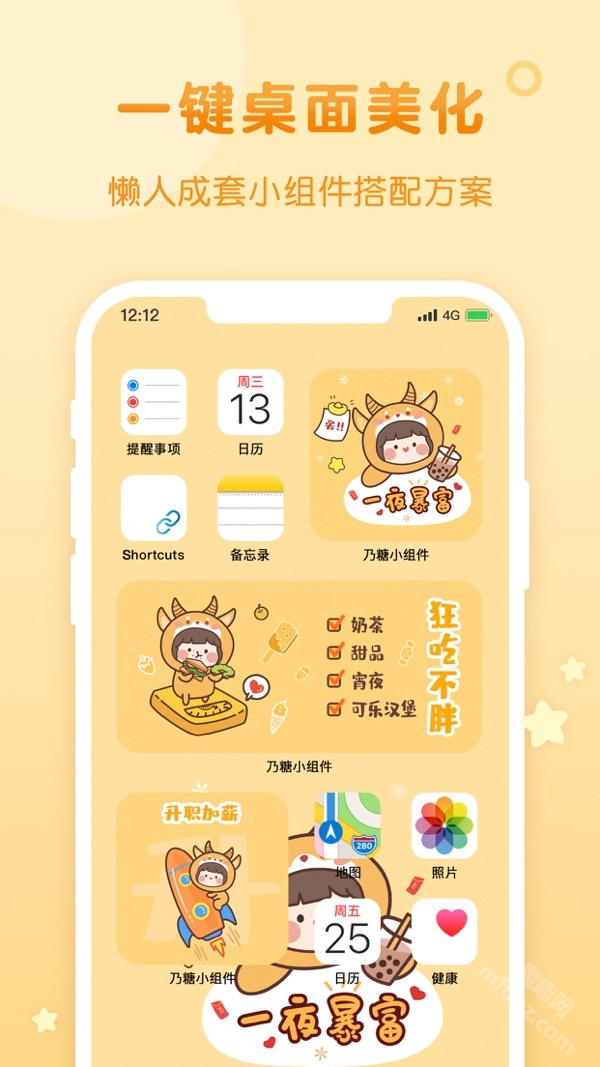 2、个性搭配 美化桌面:提供成套小组件、创意锁屏与桌面壁纸,既支持一键套用,快速统一桌面风格,也能根据个人喜好自由组合,简单几步就能打造专属桌面效果。
