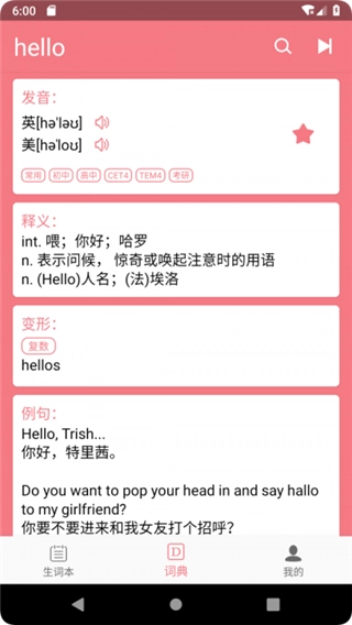 生词:超实用的生词本功能,一键就能记录,方便学习和回顾。