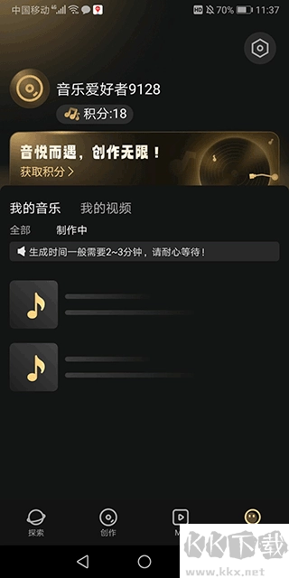 4、耐心等待成果:生成完整音乐需要一定时间,在此期间请耐心等候。MuseAI 会精心雕琢每个细节,直至音乐制作完成。