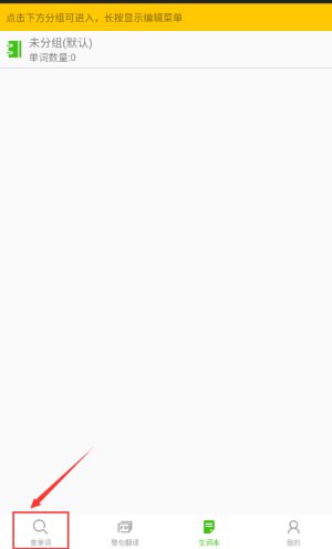 1、点击红框查单词按钮,进入单词查询功能界面。