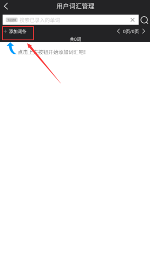 3、点击红框添加词条按钮,开始创建新词汇条目。