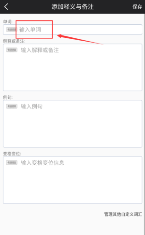 4、在红框输入单词区域,填写目标词汇内容。