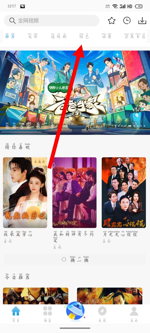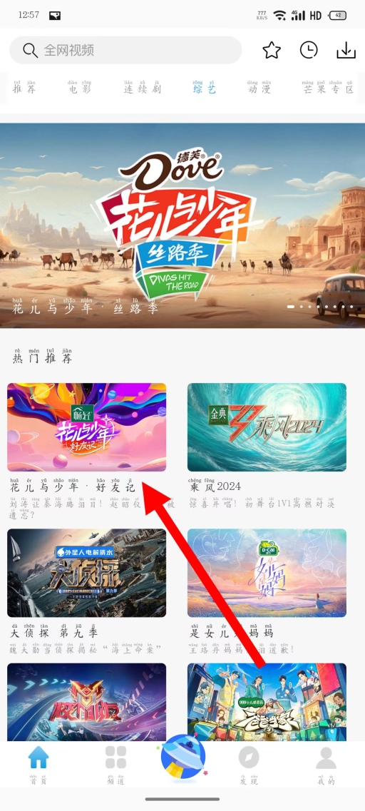 3、在综艺页面的热门推荐中,选择你想观看的节目。