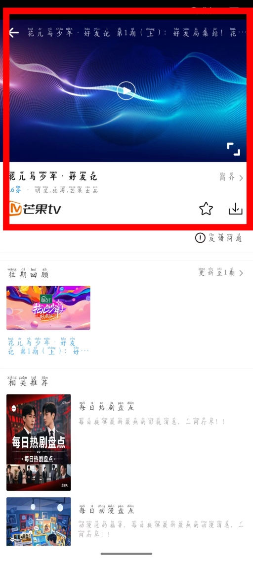 4、点击节目封面进入播放页面,点击播放按钮即可开始观看节目。