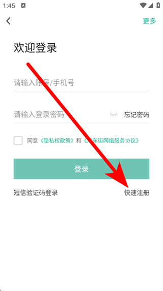 3、在登录页面,点击快速注册,进入注册页面。