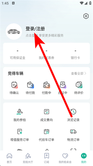2、在我的页面,点击登录注册,进入登录页面。