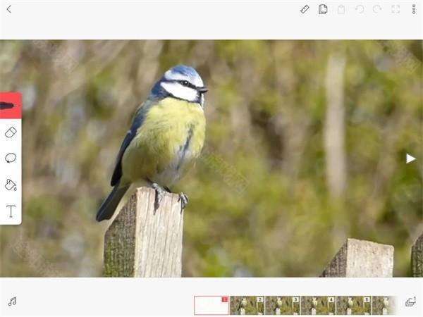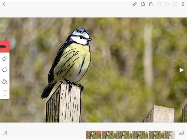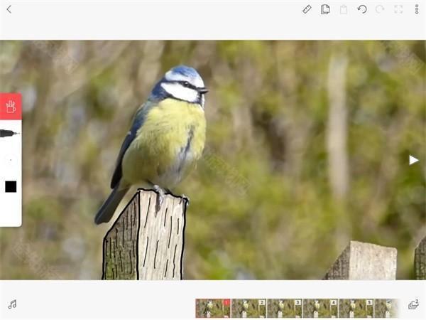 全部画完之后,点击预览,可以看到鸟就动了起来,如果需要做一些修改,可以长按下方帧缩略图,可以删除或者复制帧等。