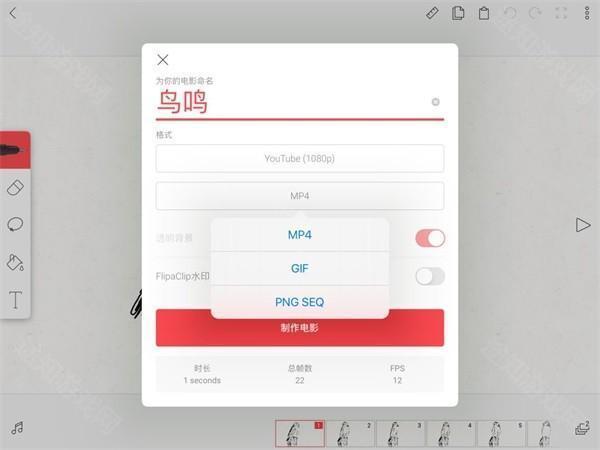 所有编辑工作完成后,我们点击右上角的三点图标,选择“制作电影”选项,就能进入导出界面。导出时可以挑选不同的分辨率,也能选择导出为动图格式或PNG序列,不过PNG序列属于付费功能。