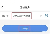 2、输入收到的短信里面的商户号 ,然后点击下一步。