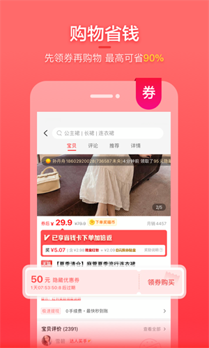 2、【购物红包】领取隐藏优惠券的同时还能获取购物红包,轻松享受淘宝购物的乐趣,让网购既实惠又省钱!