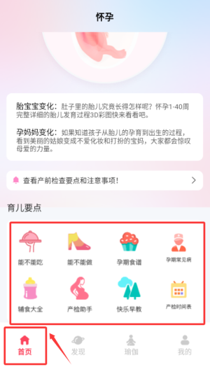2、浏览首页育儿知识板块,查看饮食宜忌等指导内容。