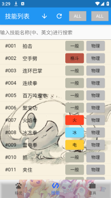 2、点击底部的技能图标,玩家就能查询宝可梦的各项技能,查看详细的效果说明与具体数值。