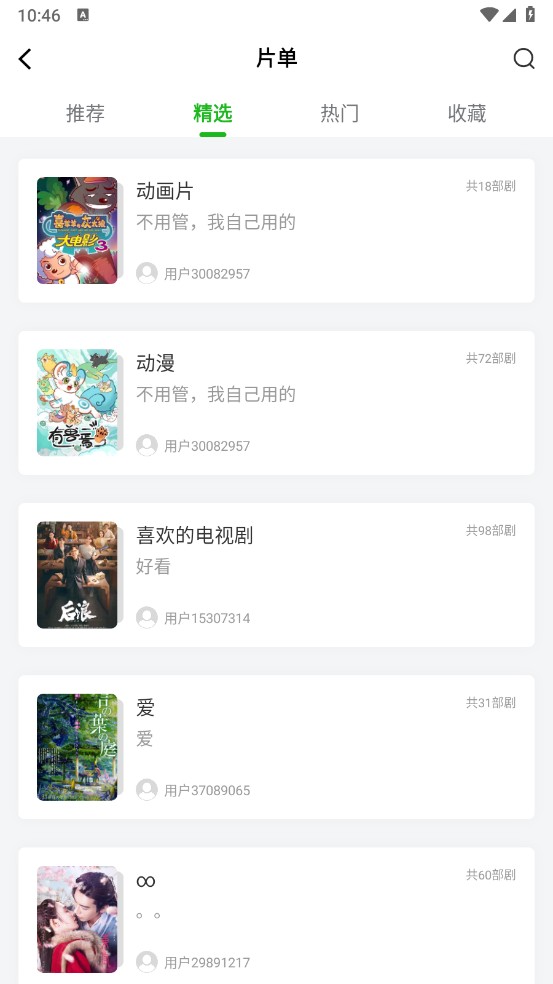 3、点击“片单”入口进入,这里收录了各类热门且精选的动漫、电视剧、电影等资源。