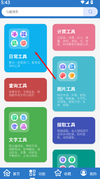 1、进入首页的功能板块,浏览各类工具分类,找到自己需要的实用功能入口。