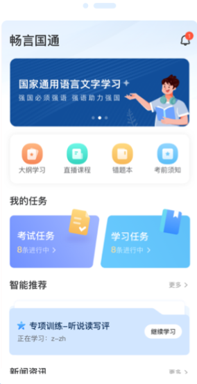 畅言国通是一款面向少数民族地区用户开发的国家通用语言(普通话)学习应用,整合“教、学、练、考、管”五大核心板块,可全方位覆盖听、说、读、写四项语言技能的训练场景。该软件依托科大讯飞的先进语音识别技术,提供语言诊断、智能推荐、分级学习、模拟测评、专项练习等多元化功能。借助游戏化的“闯关机制”与情景化教学模式,有效激发学习兴趣并强化实用能力,适用于教师语言能力提升、普通话水平测试备考以及全民语言素养培育等多种场景。欢迎使用畅言国通,开启一段全新的趣味语言学习旅程!