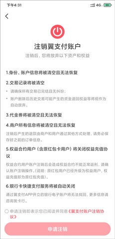 6、阅读并同意注销协议,点击“申请注销”即可完成账户注销。