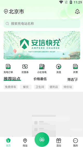 2、智能定位功能:可自动切换至当前所在位置,并为用户推荐距离最近的空闲充电站。