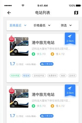 -通过地图定位或列表筛选精准查找附近可用充电桩;