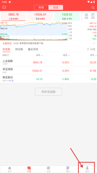 1、打开理财类应用,点击底部我的选项,进入个人中心页面。
