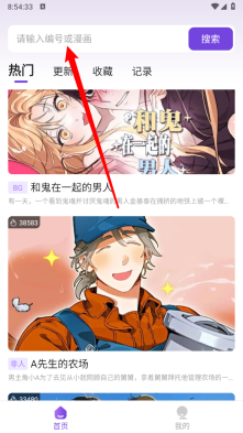 2、如图,滑动选择或直接输入漫画名进行搜索。
