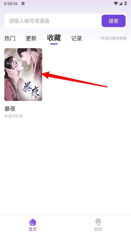 3、回到主页后切换到收藏板块,就能查看自己收藏的漫画资源了。