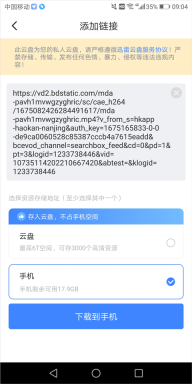 3、在打开的新页面中将链接复制进去点击即可,如需到云盘,可切换存储空间为云盘即可